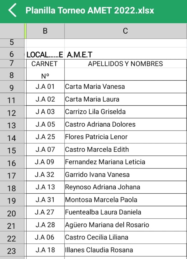 A continuación las jugadoras que integran el equipo.