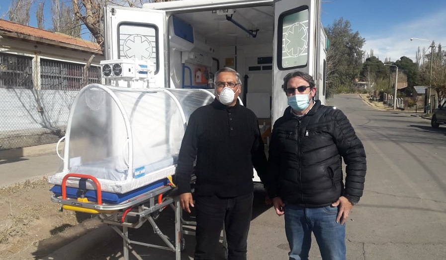 Los profesores de la Escuela Técnica General Manuel Savio fabricaron una «camilla cápsula» que fue entregada al Hospital Aldo Cantoni de la Villa Calingasta. La actividad de las escuelas técnicas y agrotécnicas sigue a pesar de la pandemia; comenzó con la confección de máscaras de protección y ahora suma una «camilla cápsula».