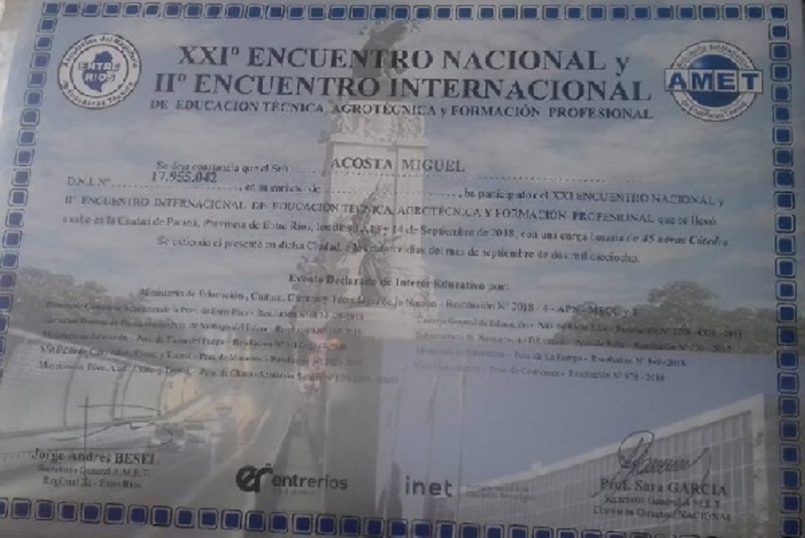 AMET informa que están disponibles los certificados del XXI Encuentro Nacional y II Encuentro Internacional de Educación Técnica, Agrotécnica y Formación Profesional.