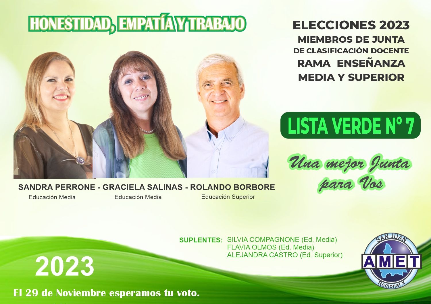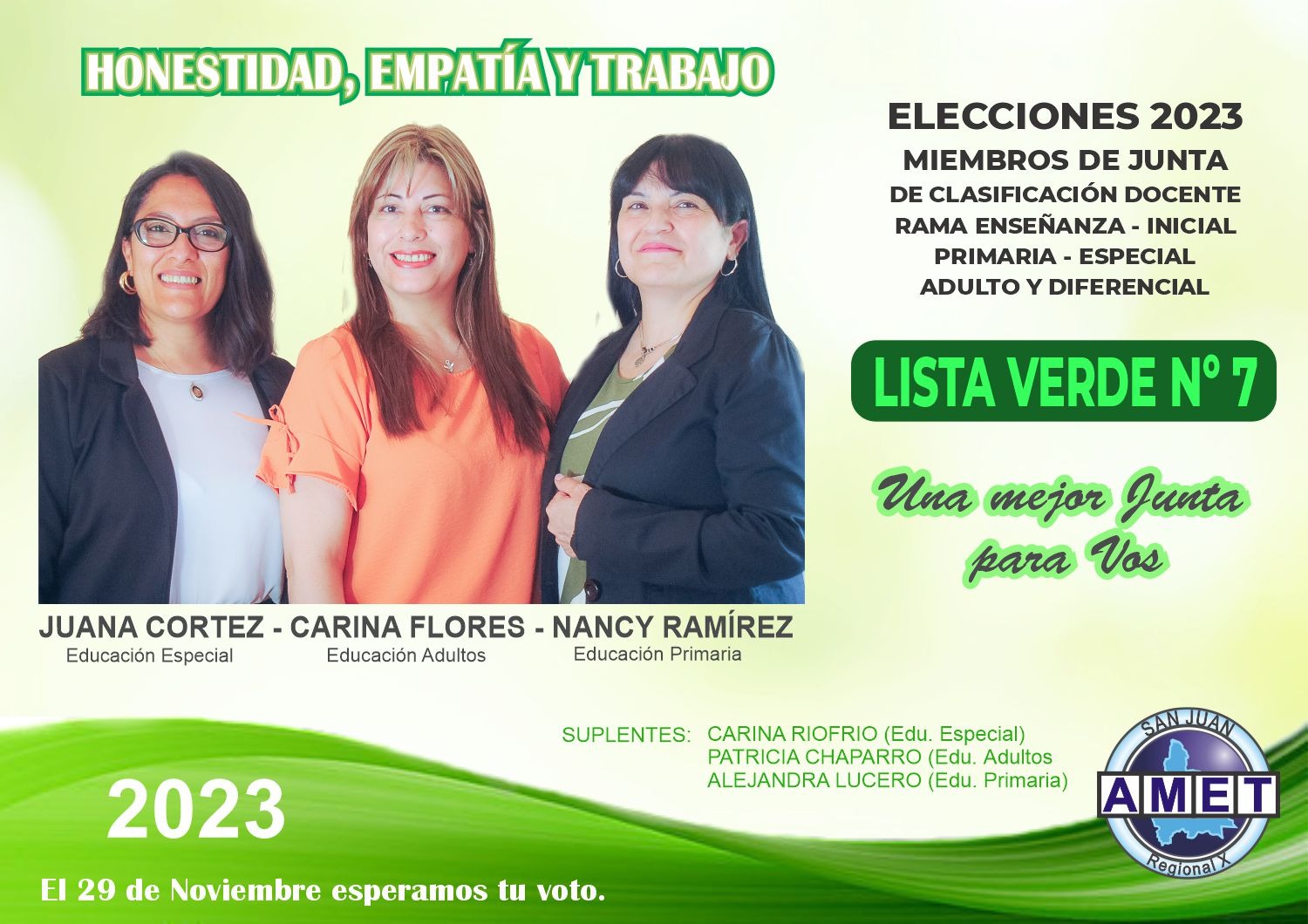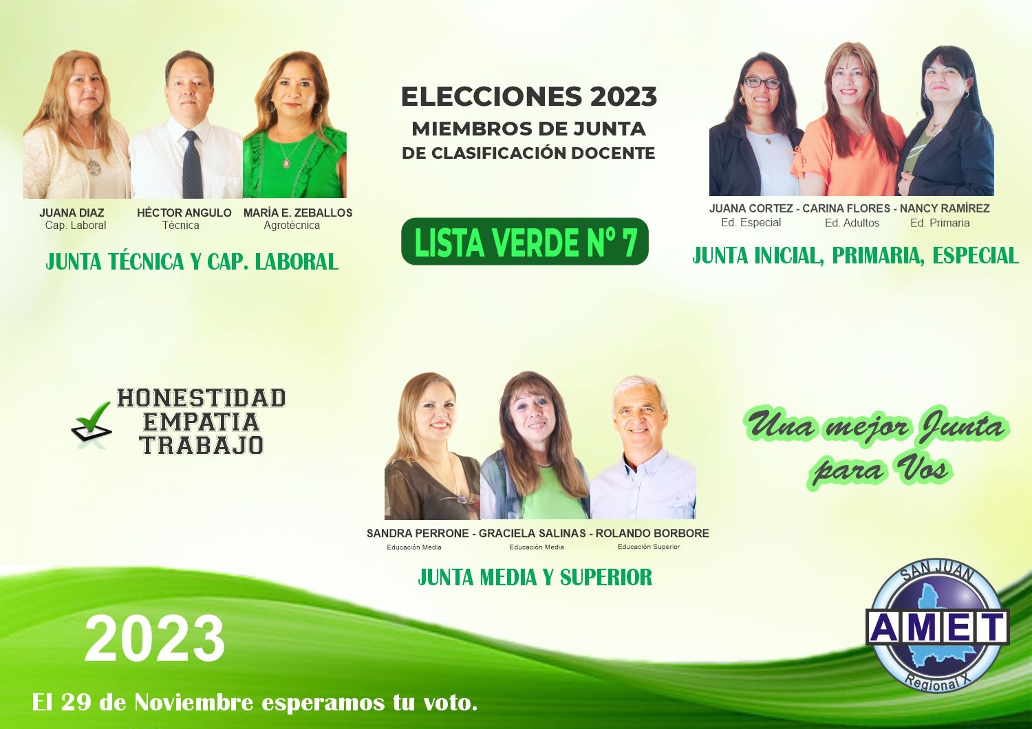 La Asociación del Magisterio de Enseñanza Técnica - AMET San Juan participará de las elecciones en la Juntas de Clasificación Docente. Por eso ponemos a disposición de los docentes toda la información sobre nuestras candidatas y las propuestas para Junta Rama Inicial, Primaria, Especial, Adultos y Diferencial.