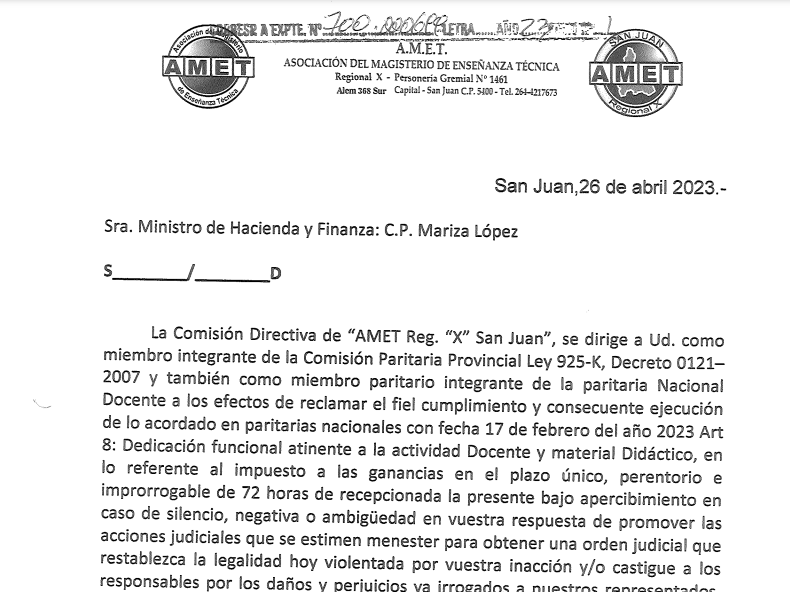 Los docentes interesados deben acudir el 30 de mayo a las 9.30 horas a calle Tucumán 75 norte, Capital.