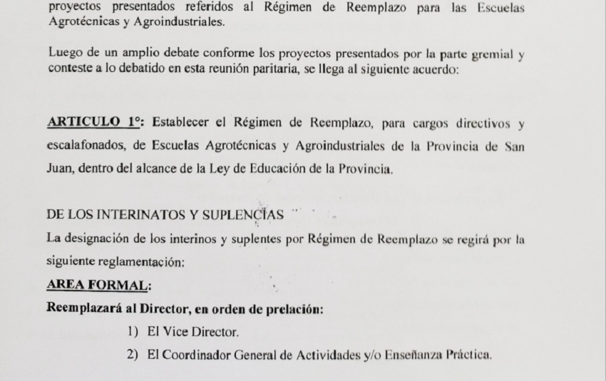 La Asociación del Magisterio de Enseñanza Técnica - AMET San Juan participó de la reunión en la que se aprobó el Régimen de Reemplazos de Escuelas Agrotécnicas y Agroindustriales.